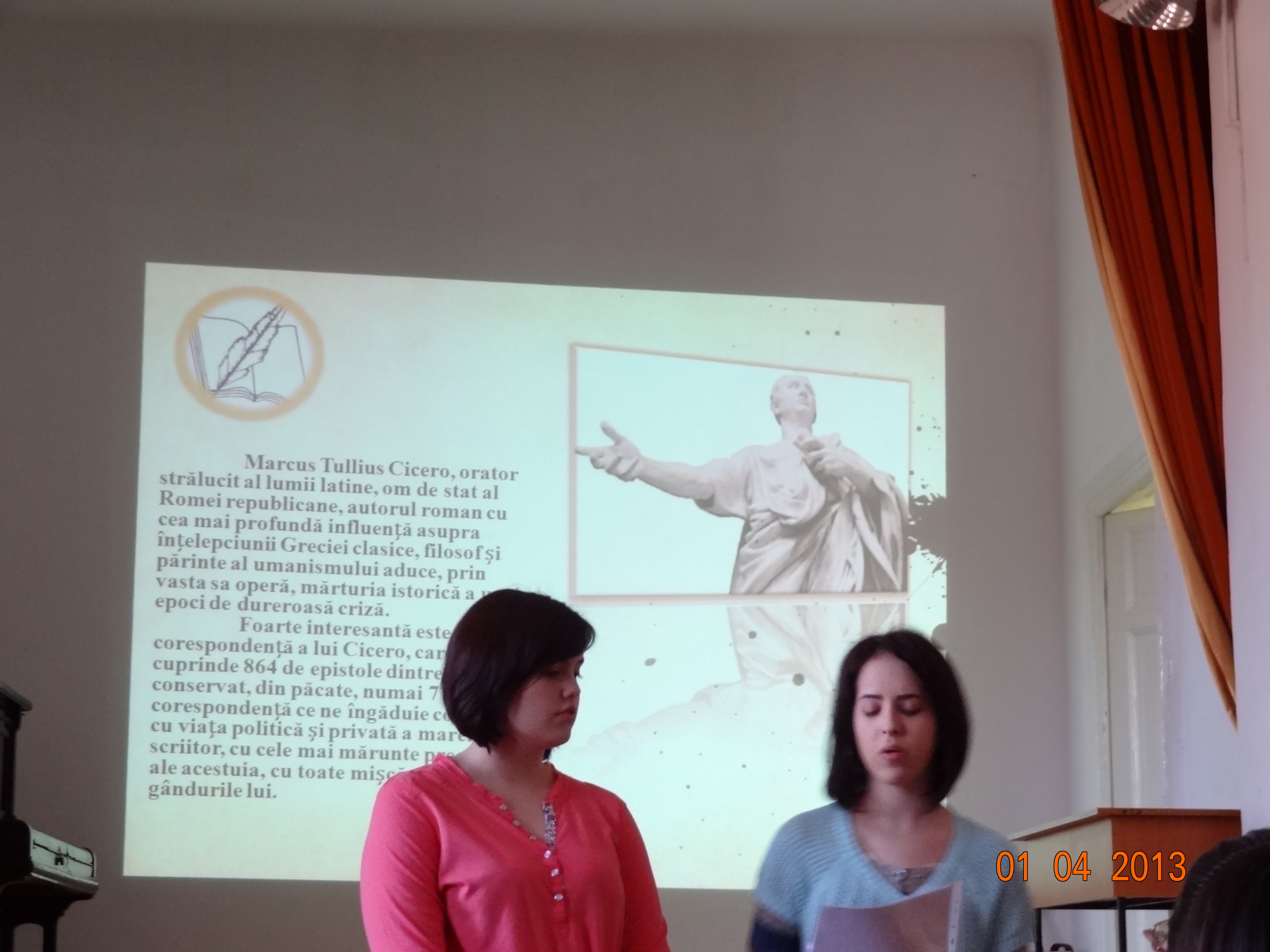 C.N. „Gh. Sincai”,Cojocaru Oana Denisa, Dumitru Cristiana Alexandra:”Arta oratoriei-ieri, azi”, prof. coordonator, Luminiţa Gheorghiu;